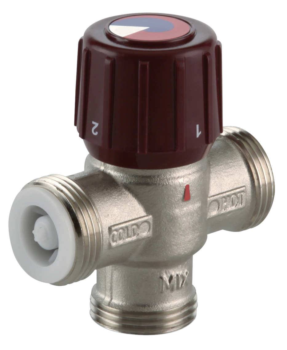 Valvola per impostazione della temperatura comfort dell'acqua calda sanitaria alle utenze. Range di regolazione 42-60°C.