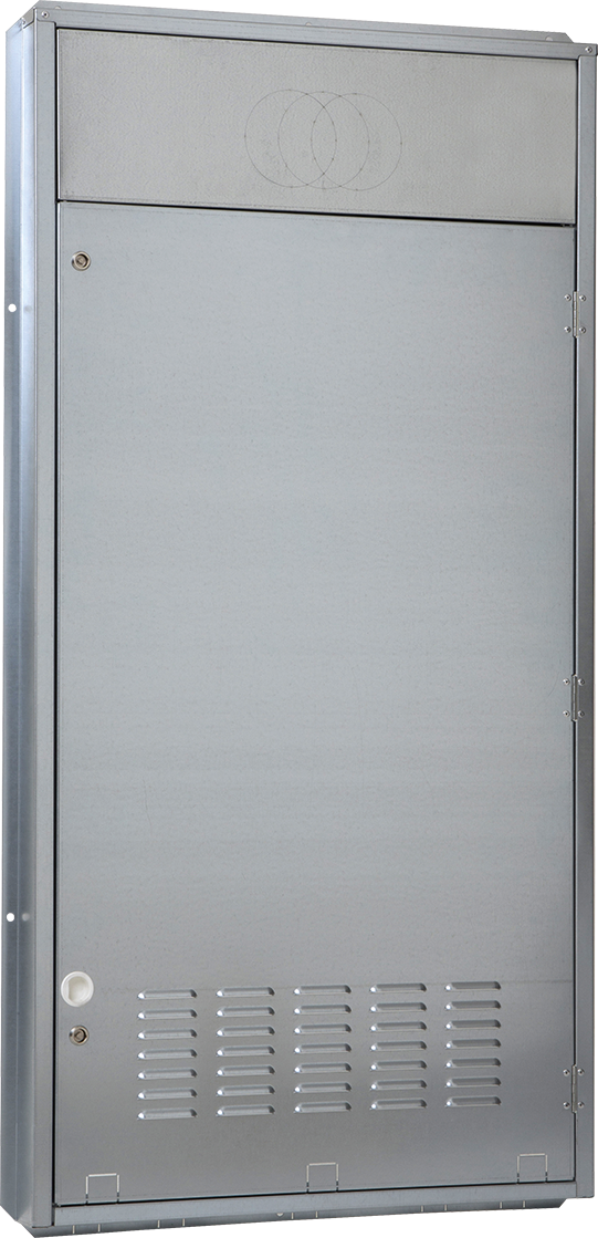 Predisposto per installare ogni tipologia di caldaia e scaldabagno a incasso Immergas, consente il totale recupero di spazio abitativo. Realizzato in acciaio zincato, il telaio OMNI CONTAINER può essere fornito e messo in opera precedentemente rispetto alla caldaia e lo sportello frontale può essere verniciato dello stesso colore delle pareti dell'abitazione per mantenere gradevole l'estetica dell'edificio.