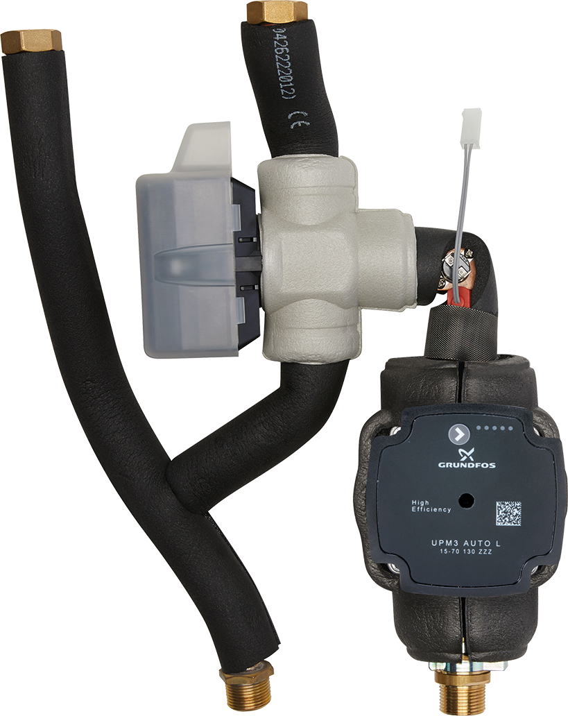 È composto da 1 circolatore a basso consumo, valvola miscelatrice e tubi idraulici di collegamento.