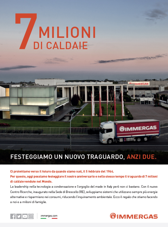 In 2019, the year in which we celebrated 55 years since the company was founded, Immergas achieved the extraordinary goal of 7 million boilers sold worldwide.