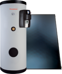 Solar pack with natural circulation with flat-plate collector and external storage tank unit