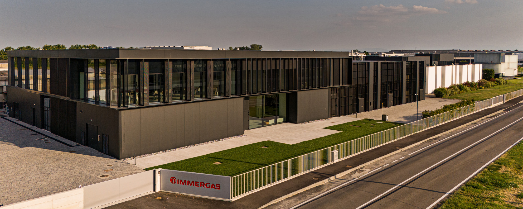 Immergas has been developing these three buildings over the years to accomplish a single large project dedicated to innovation, to confidence in the Made-in-Italy ingenuity, and the dynamism of this region. The quality of the architecture, the flexibility of the interior spaces, the equipment, and the extensive use of renewable energies: everything is designed to have an important impact on the skills development of our professional workers.