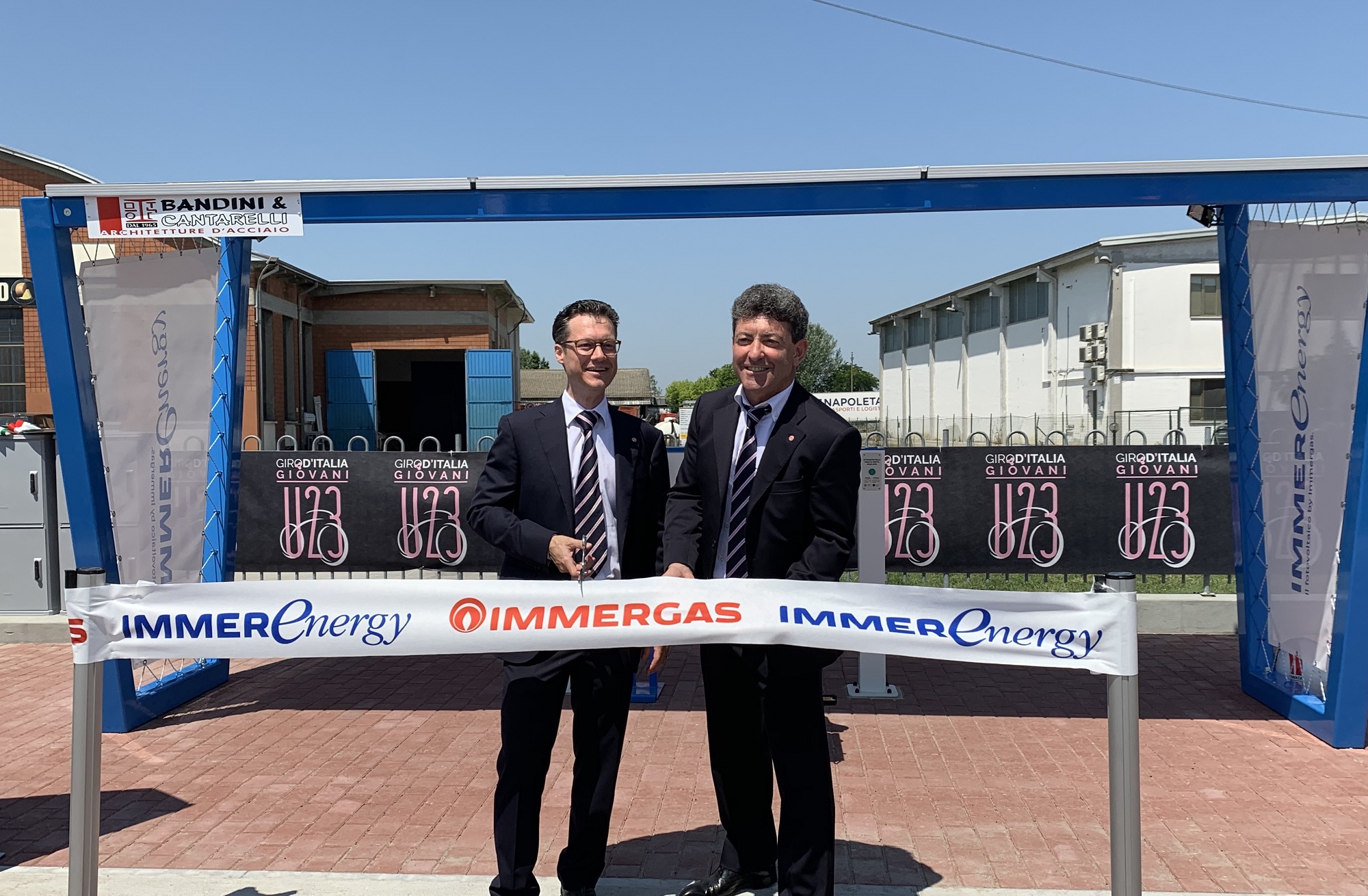 In occasione del Giro d’Italia Giovani Under 23 il Comune di Sorbolo Mezzani ha potenziato la nuova pista ciclabile che collega Sorbolo Mezzani a Bogolese, inaugurando una pensilina per la ricarica delle biciclette elettriche realizzata con le tecnologie ImmerEnergy.