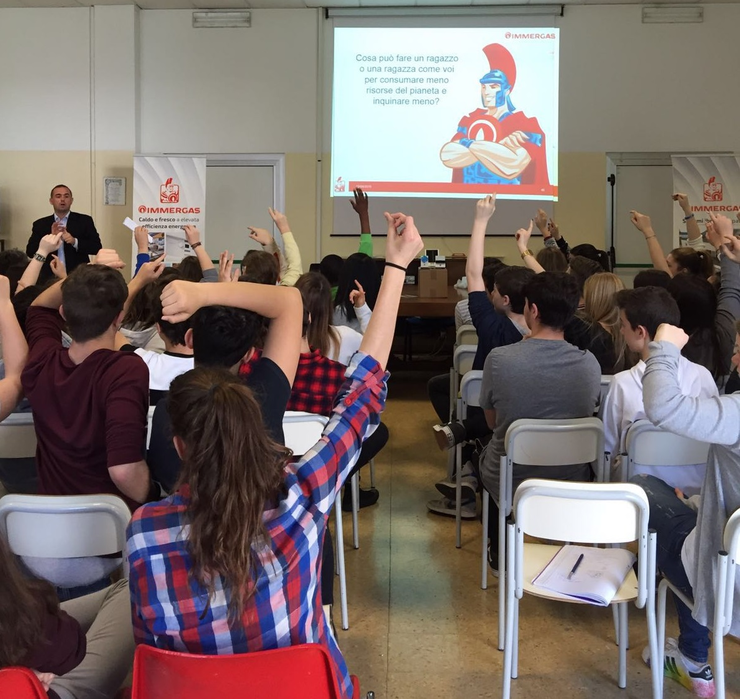 Immergas porta il programma di educazione sui temi del risparmio energetico in giro per l'Italia nelle scuole elementari e medie.