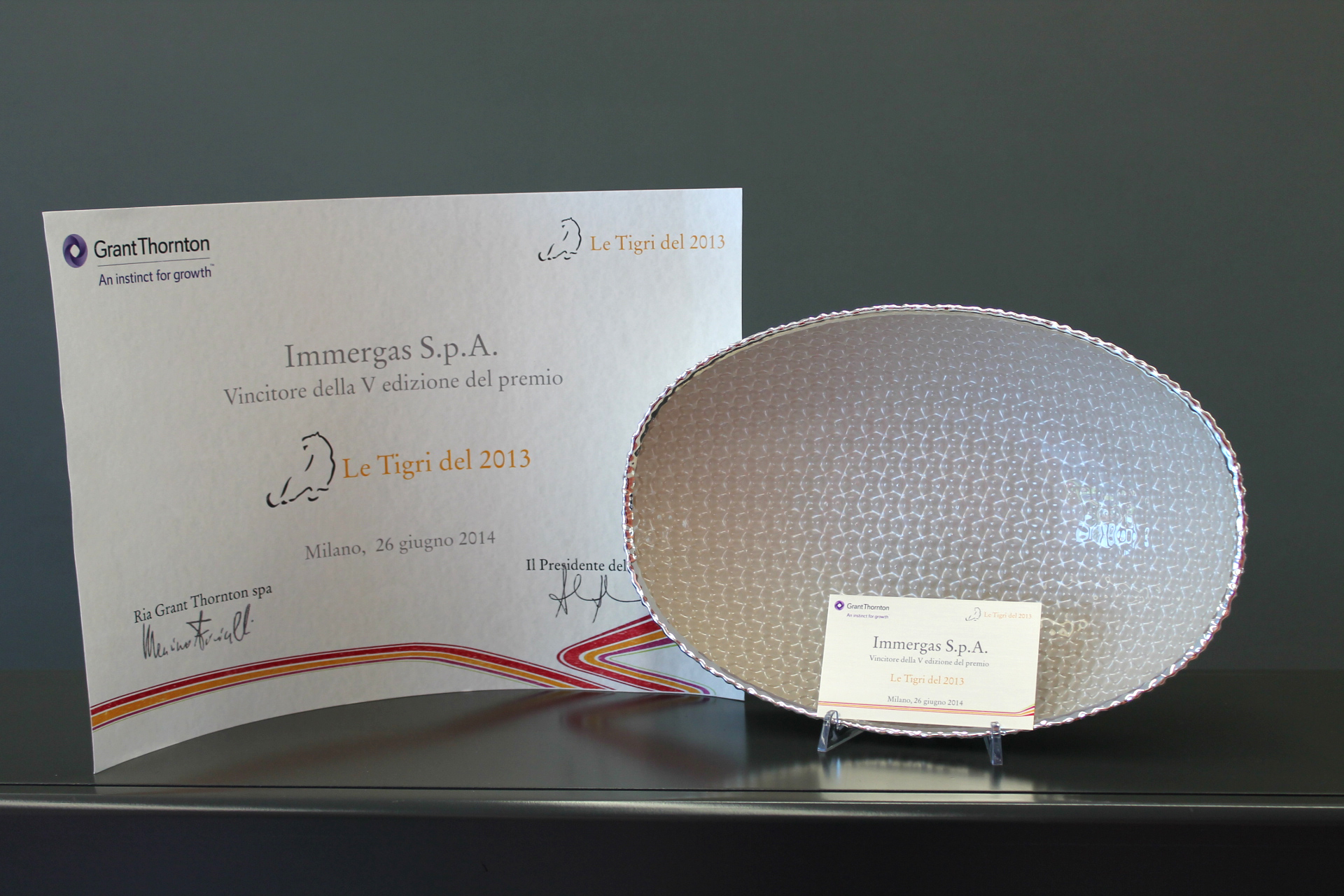 Brescello 1 luglio 2014 - Nell'anno del 50° dalla Fondazione, Immergas ha vinto la quinta edizione del Premio "Le Tigri", promosso da RIA Grant Thornton, società di revisione e organizzazione contabile, member firm italiana di Grant Thornton International, con il contributo del Banco Popolare, di First Capital e Quaeryon.