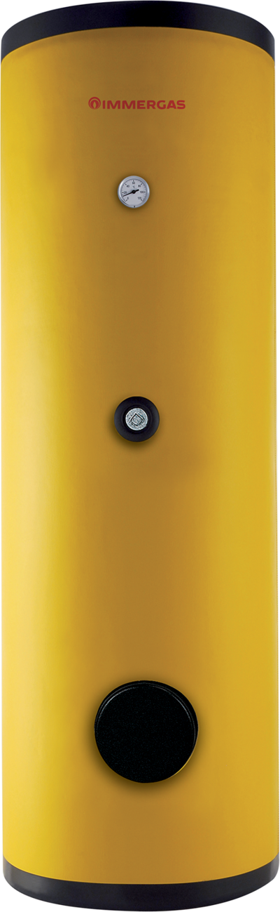 UB 1000 V2 è dotato di due scambiatori acqua/acqua avvolti a spirale, di due anodi di magnesio e di sonda NTC per il collegamento a caldaie Immergas < 35 kW.