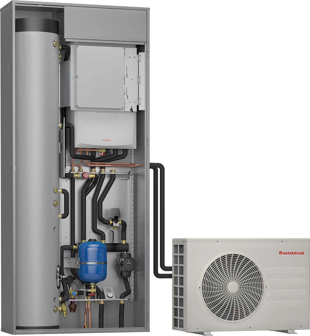 Pompa di calore splittata da incasso o in armadio tecnico, con bollitore integrato da 160 litri