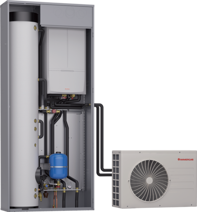 Pompa di calore ibrida splittata, da incasso, con bollitore integrato da 160 litri