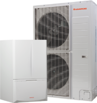 Alti rendimenti stagionali: ideale per climatizzare ambienti sia in riscaldamento invernale (massima temperatura 80 °C grazie all’unità interna a condensazione) che in raffrescamento estivo.