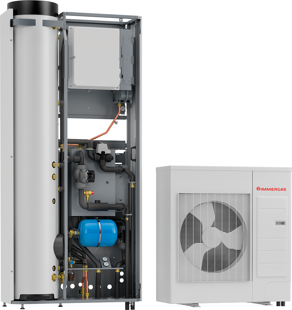 Le pompe di calore Immergas aria-acqua raffrescano gli ambienti in estate, mentre in inverno utilizzano il calore contenuto nell’aria esterna per riscaldarli. Sono ottime per efficienza energetica, gestione economica e riduzione di emissioni inquinanti.