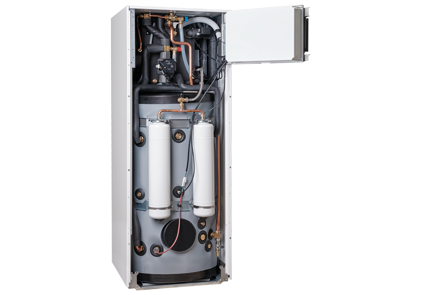 Pompa di calore splittata a basamento, con bollitore integrato da 180 litri