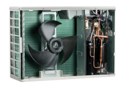 Alta flessibilità: l'unità motocondensante di dimensioni compatte, consente maggiore flessibilità di posizionamento all'esterno dell'abitazione o su un balcone, anche in località con temperature particolarmente rigide. Consente di realizzare impianti fino a 2 zone (una zona di serie e una optional) con kit esterno optional.