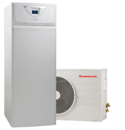 Le pompe di calore Immergas aria-acqua raffrescano gli ambienti in estate, mentre in inverno utilizzano il calore contenuto nell’aria esterna per riscaldarli. Sono ottime per efficienza energetica, gestione economica e riduzione di emissioni inquinanti.