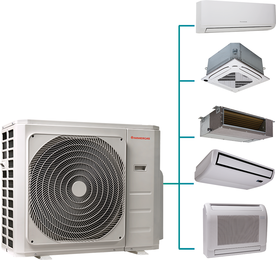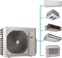 Climatizzatore multisplit a espansione diretta con tecnologia inverter per configurazioni da 2 a 5 unità interne.