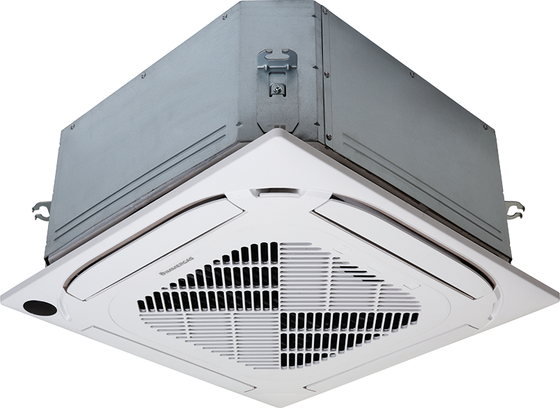 Unità interna a cassetta per installazione a incasso e controsoffitto, abbinabile a climatizzatori multisplit.