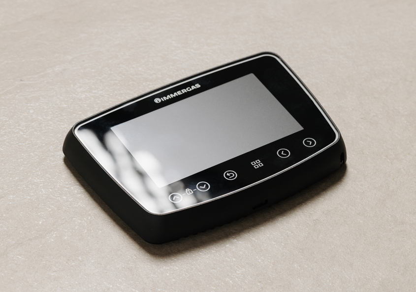Termoregolazione di serie: NEXIS è il pannello di controllo per gestire e ottimizzare il funzionamento di MAGIS M TOP. Dal design raffinato e di colore nero, è dotato di display a colori e tasti touch retroilluminati.